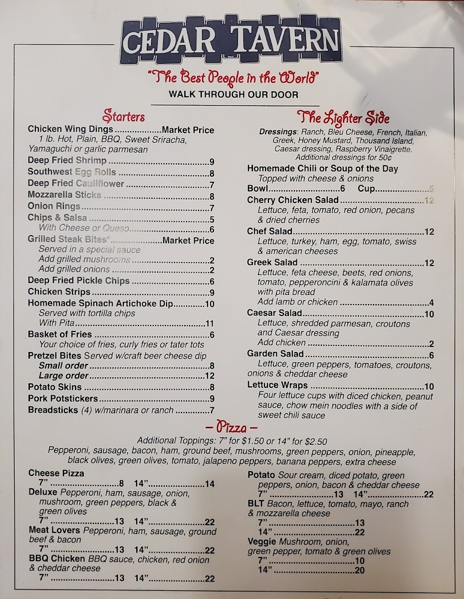 Patrons rave about the attentive service and vibrant ambiance, making Cedar Tavern a perfect spot for both casual meals and special gatherings. With a commitment to excellence, this tavern offers a taste of home in every bite.